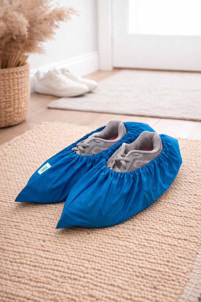 Многоразовые бахилы из водоотталкивающей ткани с удобным мешочком для хранения и переноски. Подходит для обуви от 34 до 45 размера.