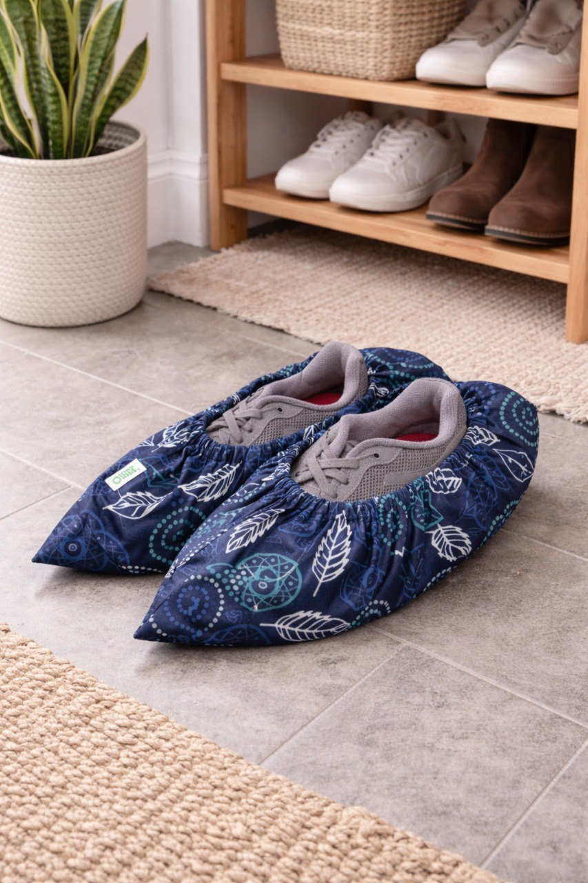 Многоразовые бахилы из водоотталкивающей ткани с удобным мешочком для хранения и переноски. Подходит для обуви от 34 до 45 размера.